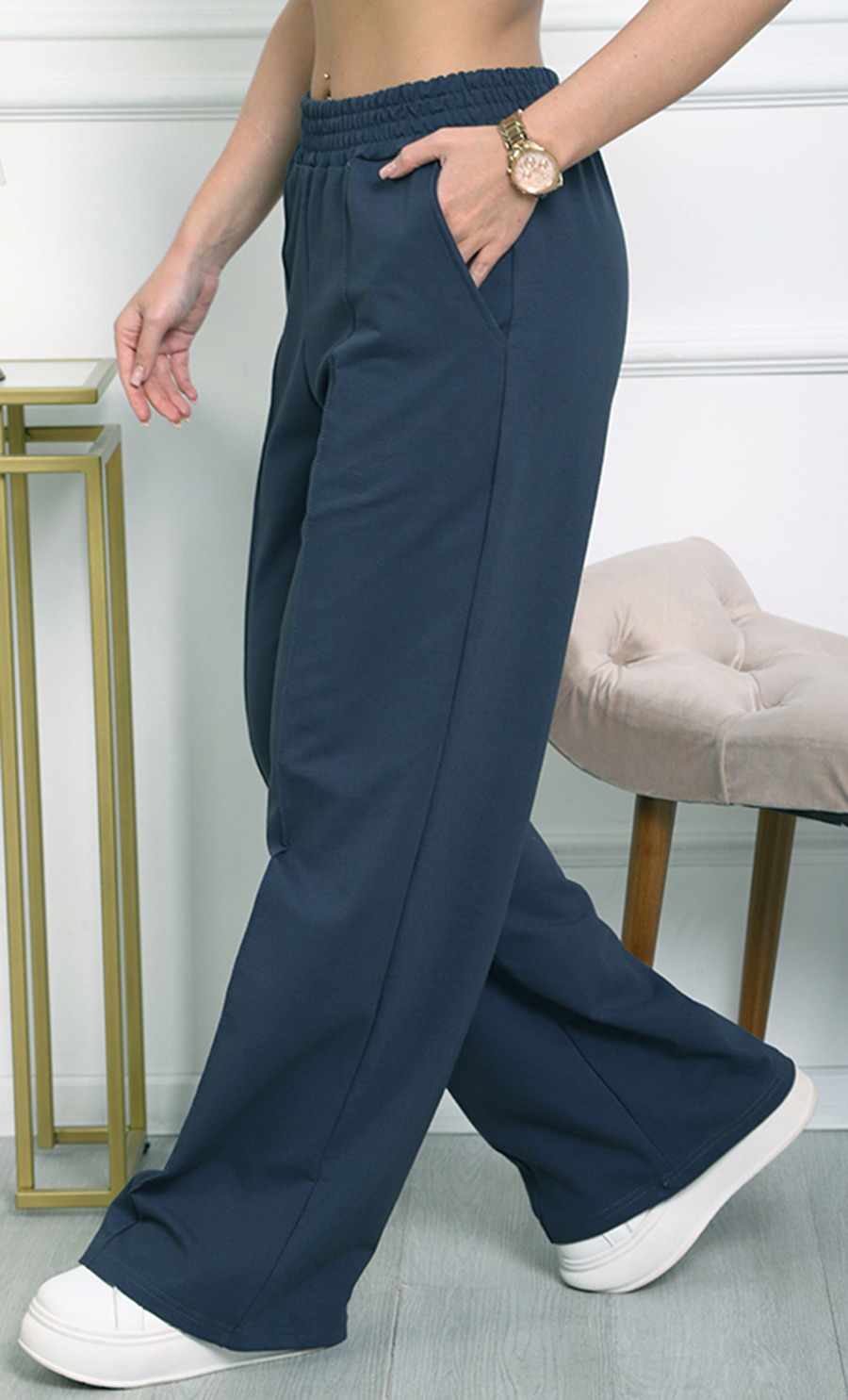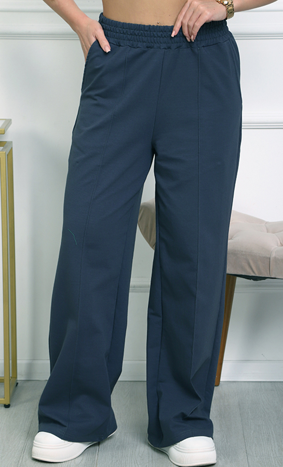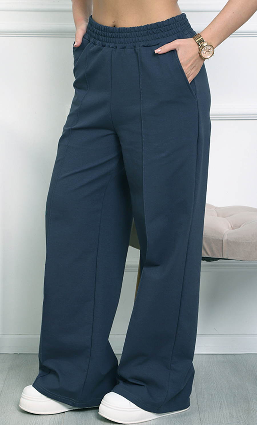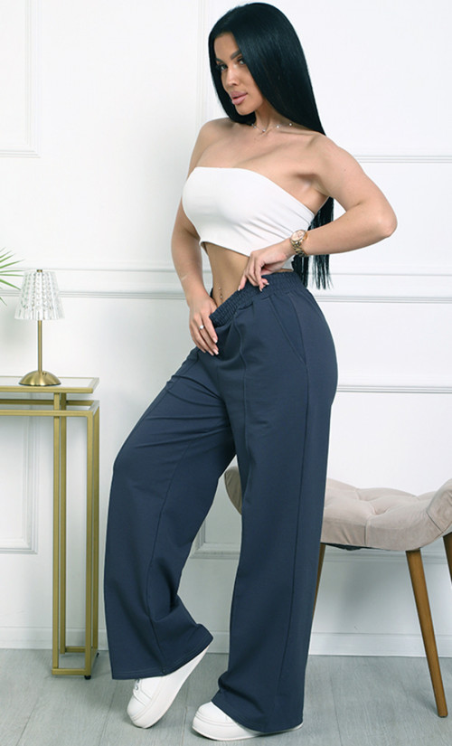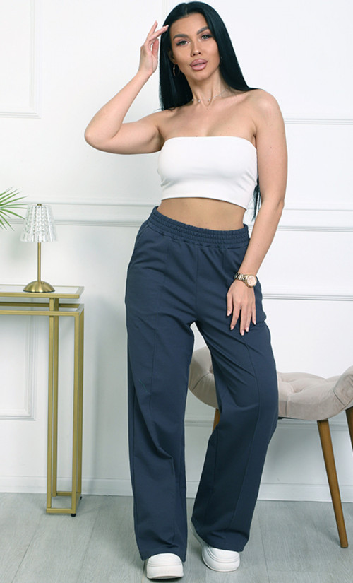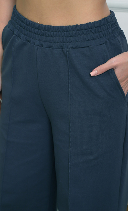 Брюки К-4848 изготовлены из футера 2х-нитка (95% хлопок, 5% эластан) — мягкого, эластичного и комфортного материала. Модель с высокой посадкой на эластичном поясе и прямыми широкими штанинами обеспечивают удобство и стиль в повседневной носке.