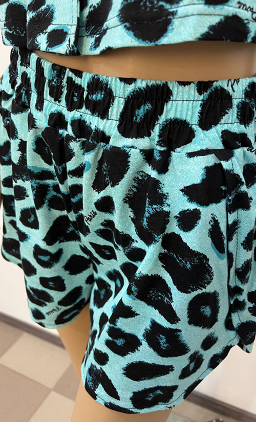 Пижама М771 выполнена из кулирки 100% хлопок — мягкого и дышащего материала, обеспечивающего комфорт и приятные ощущения на коже. Комплект состоит из рубашки с короткими рукавами и удобных шорт с поясом на резинке. Яркий бирюзово-чёрный леопардовый принт придаёт пижаме стильный и модный вид, идеально подходящий для домашнего отдыха и сна.