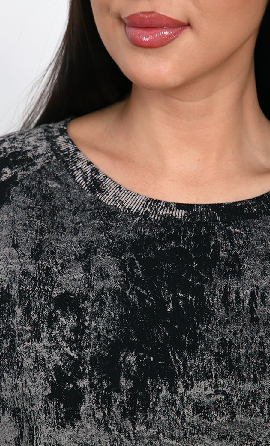 v Цвет: черный меланж с эффектом потертости и белами узорами на рукавах